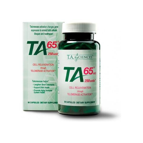 TA65 250IU is a plant-based compound that can help maintain or rebuild telomeres that shorten over the years. The length of a person's telomeres is a good indicator of their overall health. Short telomeres have been associated with aging. A person's actual biological age may be more or less than their chronological age. Telomere length is considered a key marker for measuring a person's biological age rather than their chronological age. It is recommended as a dietary supplement, take one (1) capsule daily, or as advised by your physician. If you have or think you may have any serious health problems, consult your doctor before using this product. For adults only; not to be taken by persons under 25 years of age. Keep out of reach of children. Store at temperatures up to 30°C (86°F). Protect from heat, light, and moisture. Do not use if the seal is broken.